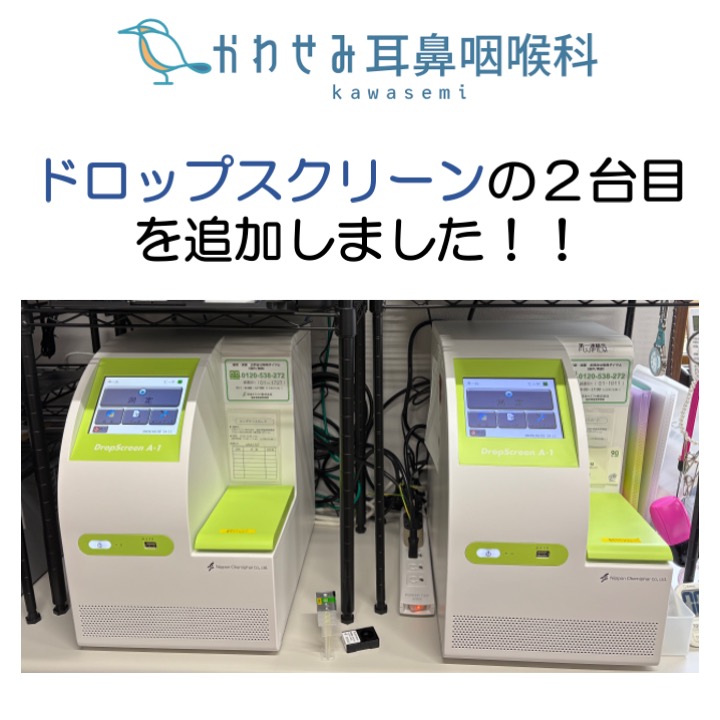 この度、皆様のご要望にお答えするため、2台目のドロップスクリーンを導入いたしました!!今年は例年よりも多いと言われている秋の花粉症(イネ科やキク科)について調べたい方、来年の春に向けてスギの舌下免疫療法を始めたい方、お気軽にご相談ください。